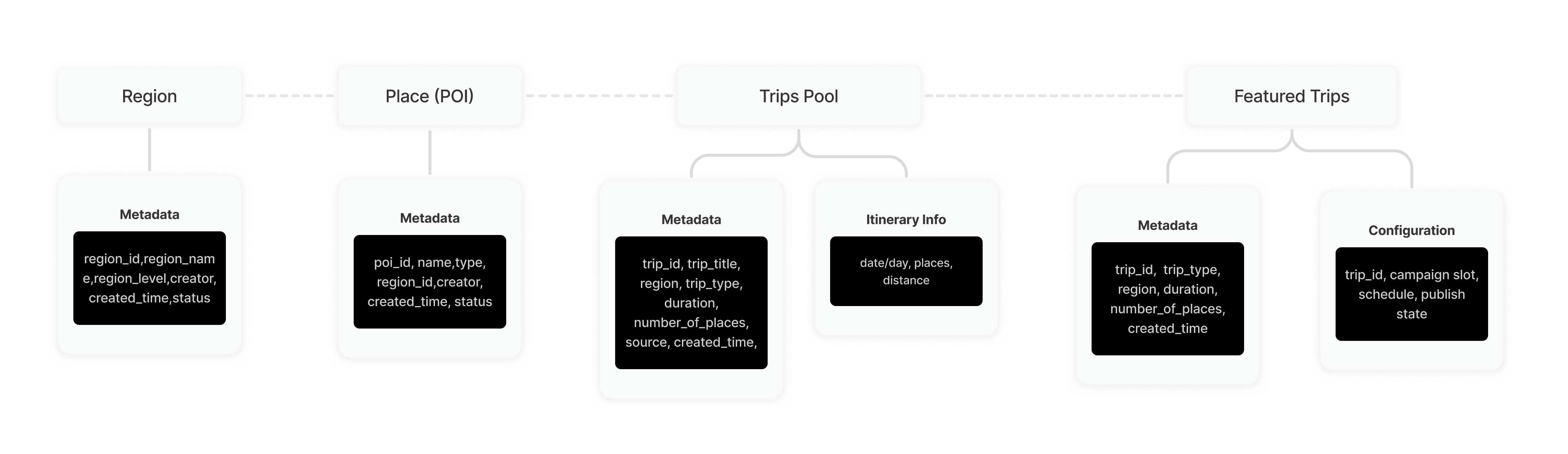 After optimizing the workflow, I focused on organizing the underlying data structure to support CMS content modules. Existing trip content was structured into a library of regions, POIs, and trips, enabling operations to configure featured trips and campaign placements independently.